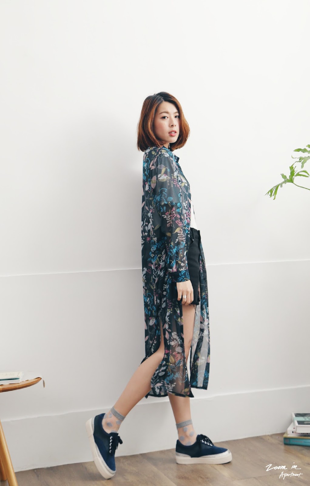 『美麗花卉飄逸雪紡質感.長版罩衫款』NT$2080元